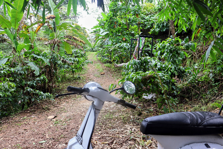 The Beandrip details the Coffee Plantation Walk & Biodiversity Stroll through the lush trails, identifying different coffee varieties, learning about the pepper vines wrapped around silver oak trees, and spotting unique local flora.
